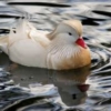 Color: Mandarin ducks come in a variety of color mutations with white being the most common color mutation for domestically raised birds. The whites have various shades of white plumage over their entire body and head. Their bills are red.