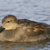 Schnatterenten (Anas Strepera) sind vielleicht nicht die auffälligsten Entenarten, haben aber ein bezauberndes Muster in kontrastierenden Braun-, Grau-, Creme- und Schwarztönen. Die Männchen erinnern optisch an einen in Tweed gekleideten Oxford-Professor. Sie haben einen runden, hohen Kopf, orangefarbene Beine und Füße und einen schwarzen Schnabel. Die Weibchen ähneln sehr stark den weiblichen Stockenten, haben aber weiße Spiegelfedern. Die Männchen mausern sich zu einem Nichtbrut- oder Schlichtkleid, das der Färbung der Weibchen sehr ähnlich sieht.