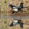 Eurasian magpie o common magpie (Pica pica) is a resident breeding bird throughout Europe, much of Asia and northwest Africa. It is one of several birds in the crow family designated magpies, and belongs to the Holarctic radiation of “monochrome” magpies. In Europe, “magpie” is used by English speakers as a synonym for the European magpie: the only other magpie in Europe is the Iberian magpie (Cyanopica cooki), which is limited to the Iberian peninsula.