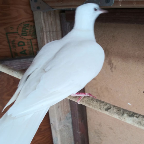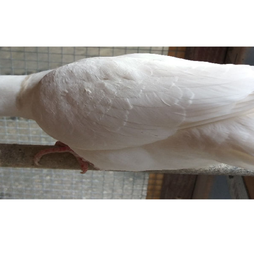 Questa varietà di colomba ha occhi scuri facilmente visibili, una rara caratteristica genetica. È una granivora che può nutrirsi anche di miscugli di uccelli selvatici, come miglio e girasole.