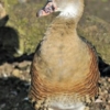 Eyton Whistling Ducks are mostly shades of brown and fawn, but with salmon-chestnut colored markings. The most striking feature is the straw-colored plumes that twirl up from the flanks and curve gracefully over the lower back. Male and female Eyton Whistling Ducks are alike in appearance, with the straw plumes being slighter longer in the males. Their bills are pink and black, and their legs are also a salmon-pink color.